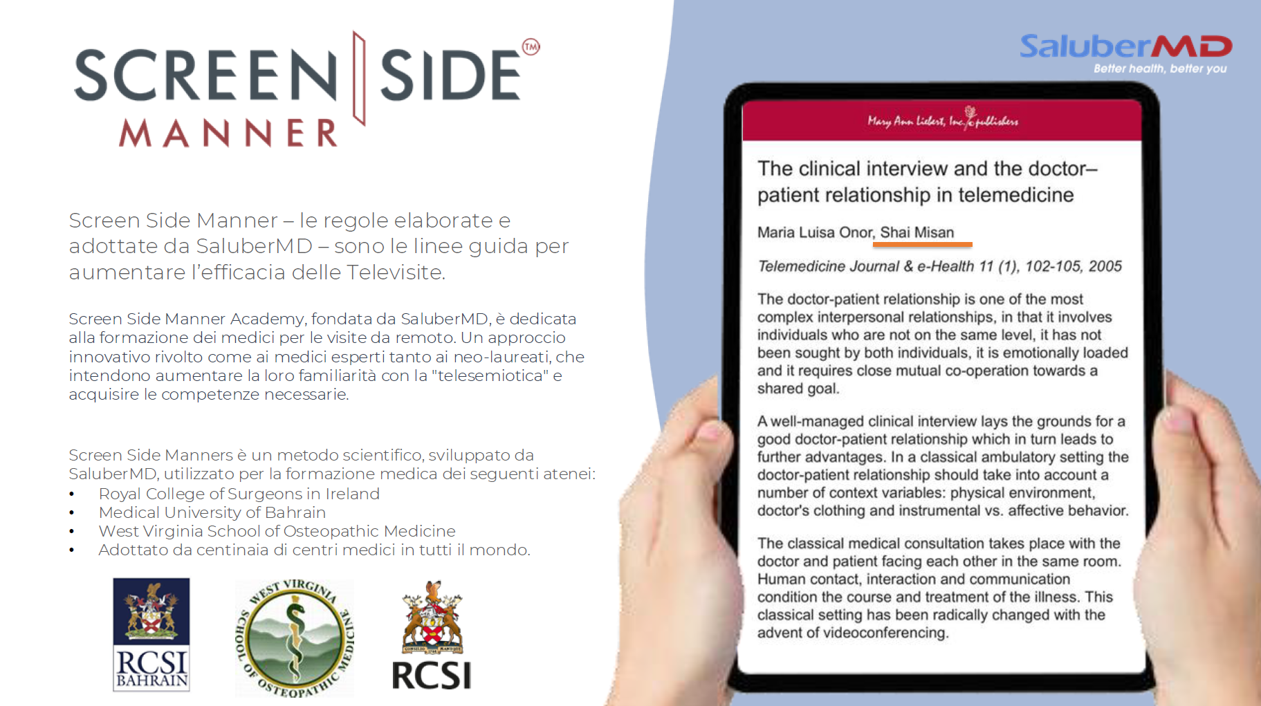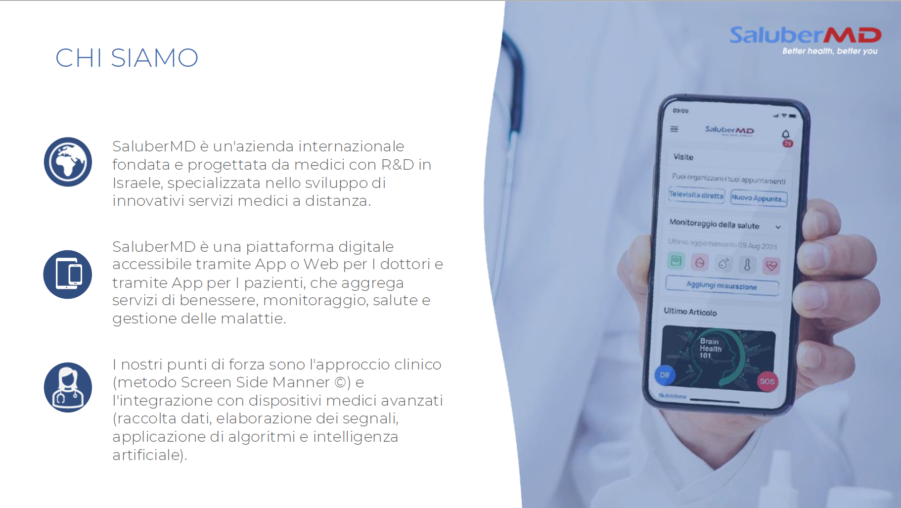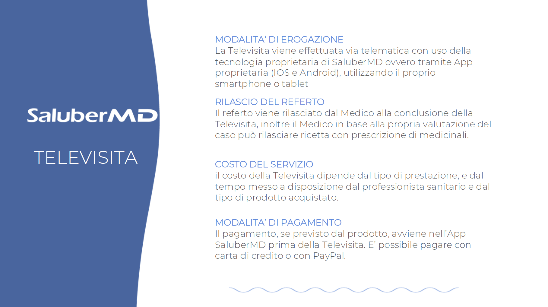 - puoi ricevere un parere medico tramite la piattaforma di SaluberMD